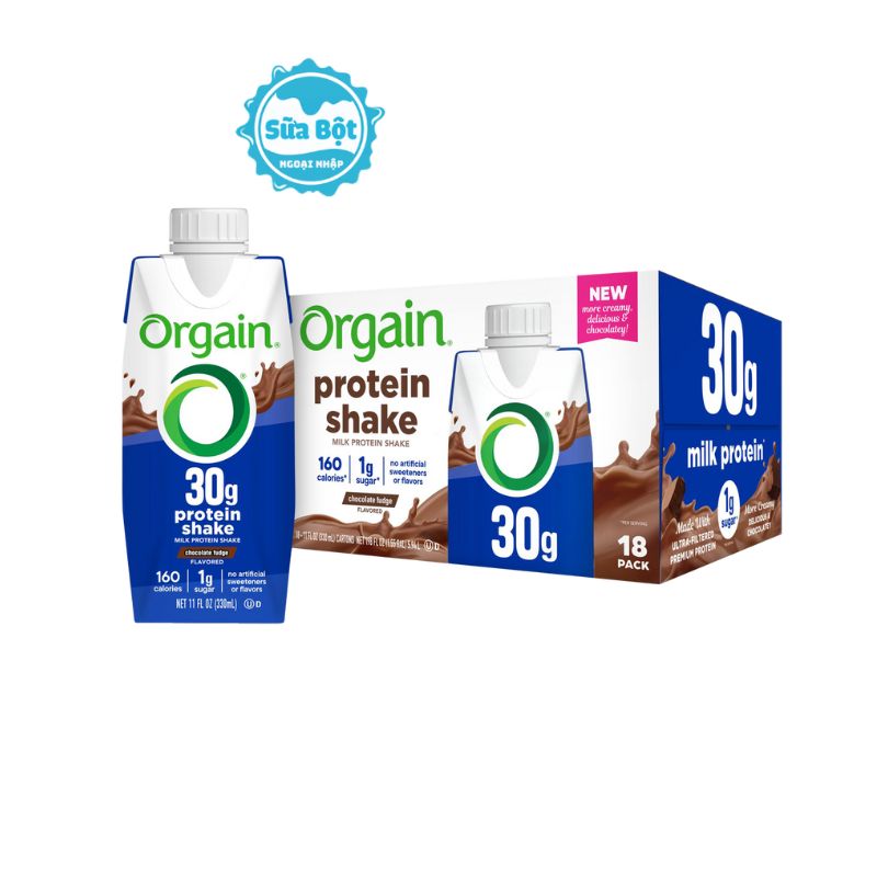 Sữa Protein Orgain 30g Protein Shake Chocolate Fudge của Mỹ thùng 18 hộp