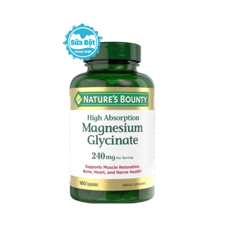 Viên uống Nature’s Bounty Magnesium Glycinate 240mg hộp 180 viên giúp bổ sung Magie, một loại khoáng chất thiết yếu giúp bạn khỏe mạnh từ đầu đến chân. Hơn nữa, Magie trong công thức của viên uống này có khả năng sinh học cao cho khả năng hấp thụ tối ưu, không chứa gluten, lactose, Non-GMO, một sản phẩm rất xứng đáng cho bạn cân nhắc lựa chọn.