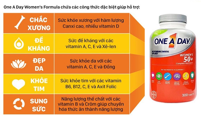 Công dụng của vitamin tổng hợp One A Day Women’s cho phụ nữ trên 50 tuổi